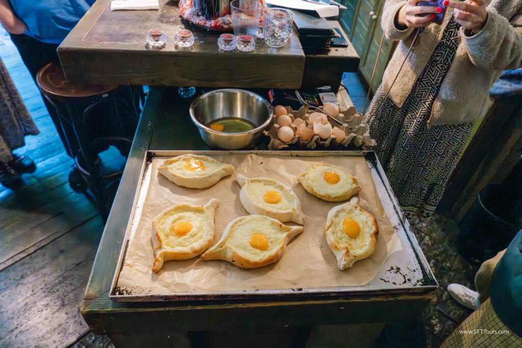 A local chef will show us how it’s done and we will each make our own khachapuri from previously prepared dough. Remember, the egg needs to be aded after baking!