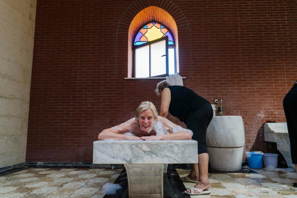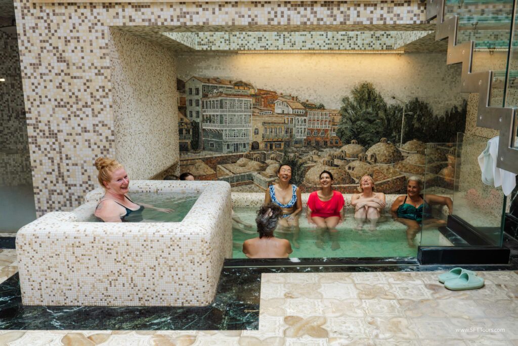 We have booked private suites for the group where you can enjoy the natural sulphuric hot springs combined with cold plunges in the pools and the kisa masseuse will come to scrub everyone in the marble tables