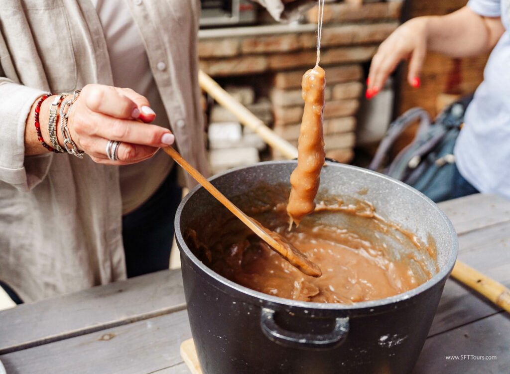 The selection of traditional Georgian goods cannot be complete without making churchkhella, the country’s healthy energy bar made from walnuts and grape juice. This is a great snack you can easily replicate at home.