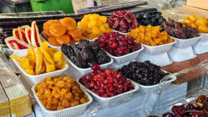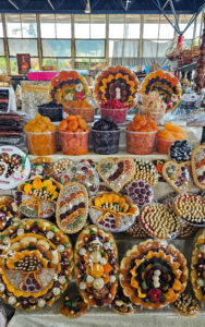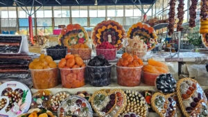 At the end of the day, we will visit the fruit market to see the pretty creations combining dried fruits and nuts into beautiful decorative pieces.