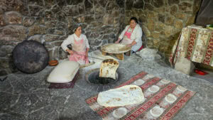 Lavash bread is traditionally made by women. Wherever you see the traditional Armenian bread, look for a group of women nearby, efficiently preparing the bread as a well coordinated group in the traditional underground ovens.