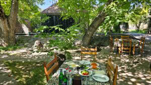 We will enjoy lunch at the garden of the large, female-owned countryside mansion, under the shade of local trees and with a feast of local trout.