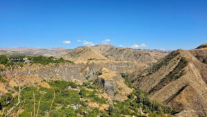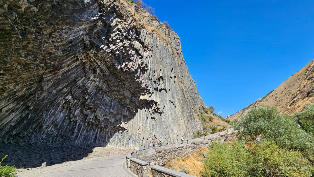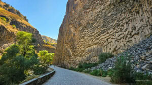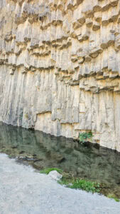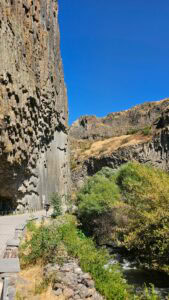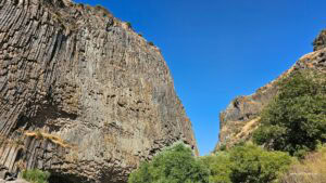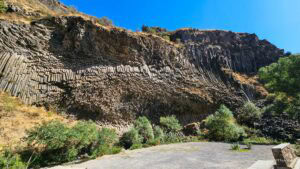 We will then organize a descent to the Azat River Canyon with 4×4 cars. The canyon is surrounded by beautiful landscapes, including the Symphony of Stones basalt rock formation, made of hexagonal columns.