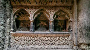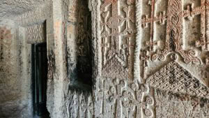 Inside one of them we can see a stone cross that depicts Jesus Christ, one of the few to do so, as well as many other scenes from the Christian Bible.