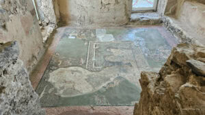 The complex also includes thermal baths with a pretty floor mosaic that has survived.