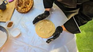 We will end the day preparing the famous Armenian cake, Gata, made of sweet layers of sugar, cinnamon, flour, egg and butter and decorated with a 100 year old mould.