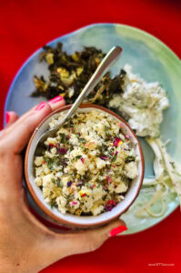 Manti are crispy, boat-shaped dumplings filled with seasoned spinach, baked to perfection, and topped with garlic yogurt and spiced butter. This unique take on a classic Armenian dish balances earthy flavors with a satisfying crunch, making it a festive favorite.
