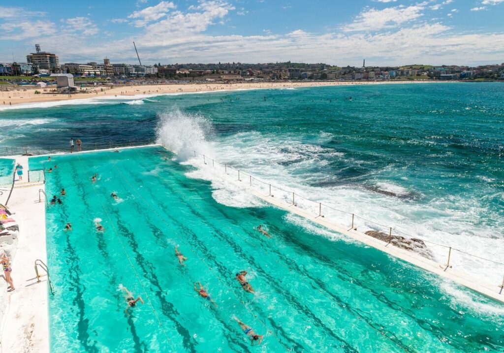 Bondi is world famous for its golden sands and crashing waves as the Aboriginal name implies: “water breaking over rocks” or “noise of water breaking over rocks”.