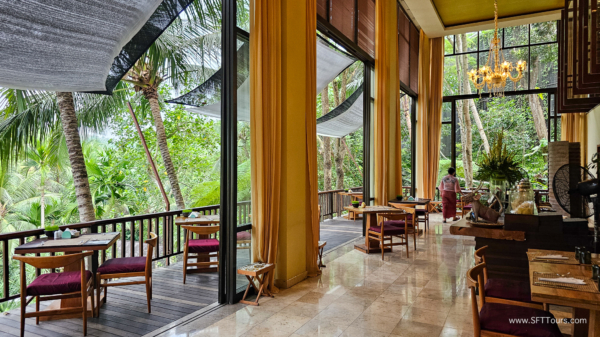 The resort has two swimming pools including an infinity pool, and an adults-only one. There is an in-house spa and a wonderful open-air restaurant with jungle views.