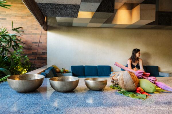 ✔️ Several wellness and spiritual activities including: 2 spa treatments, 2 sunrise yoga sessions, 1 sound healing session and 1 (optional) water purification ceremony with a priestess.