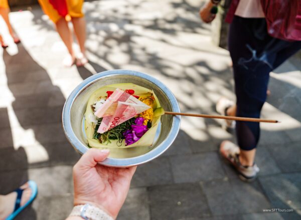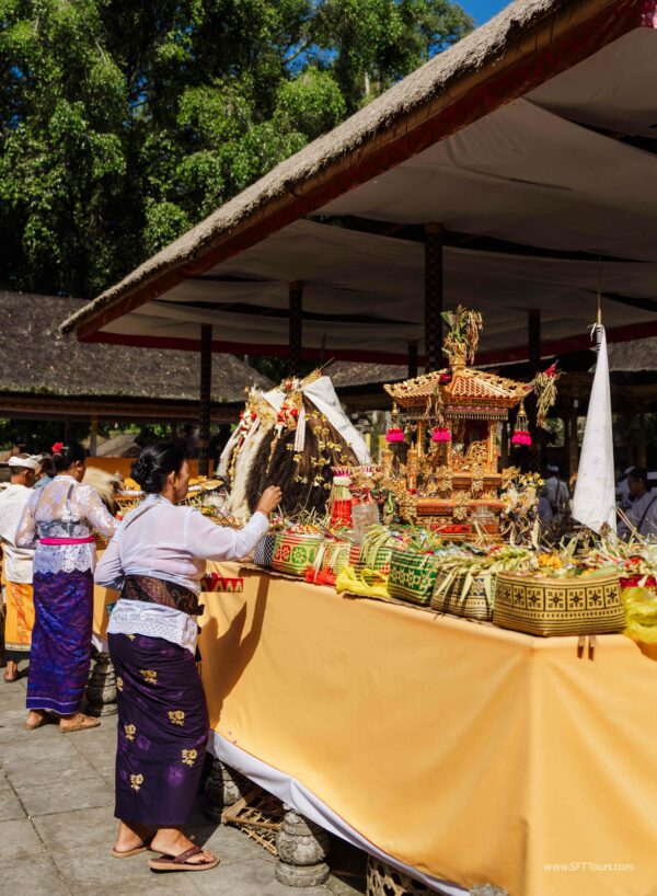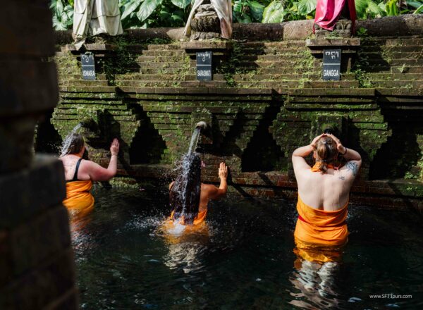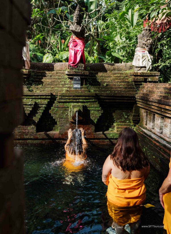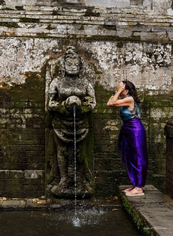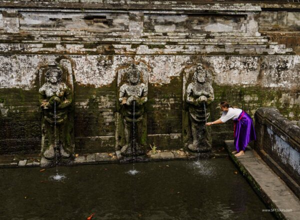 After lunch, it’s time for a spiritual water purification ceremony with a priestess at a temple frequented by the locals.