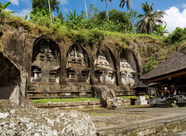 This ancient temple complex carved on the rock wall is known as The Valley of The Balinese Kings and contains 10 rock-cut shrines and several funerary monuments to the 11th century royal kings of Ubud.
