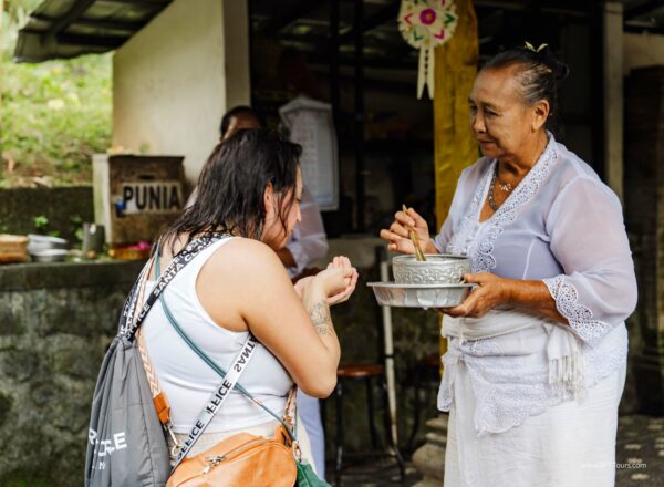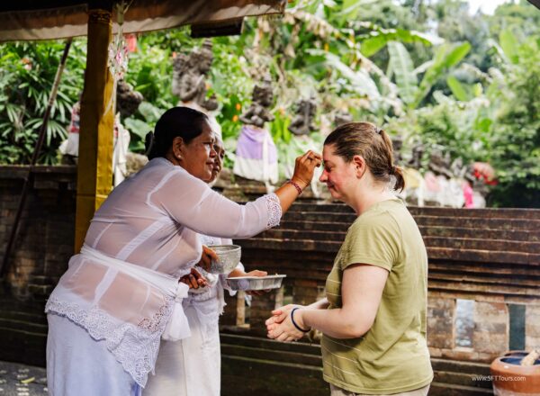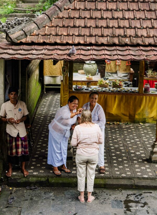 The experience is included but offered optionally to those who want to immerse themselves in the spiritual side of Balinese Hindu life.