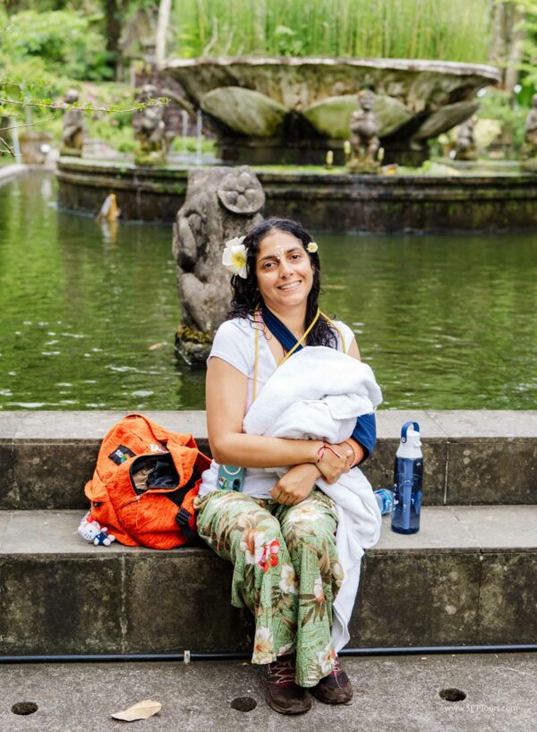 We will explore the temple complex and learn more about the Hindu water purification ceremony.