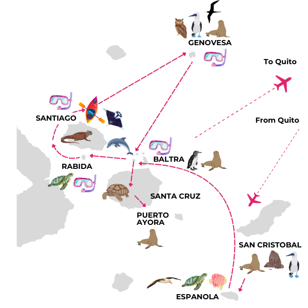 IMPORTANT: If you did not book your Quito – San Cristobal flights with us, the boat may not be able to wait for you should there be any delays with your arrival, so we recommend arriving to San Cristobal a day earlier.