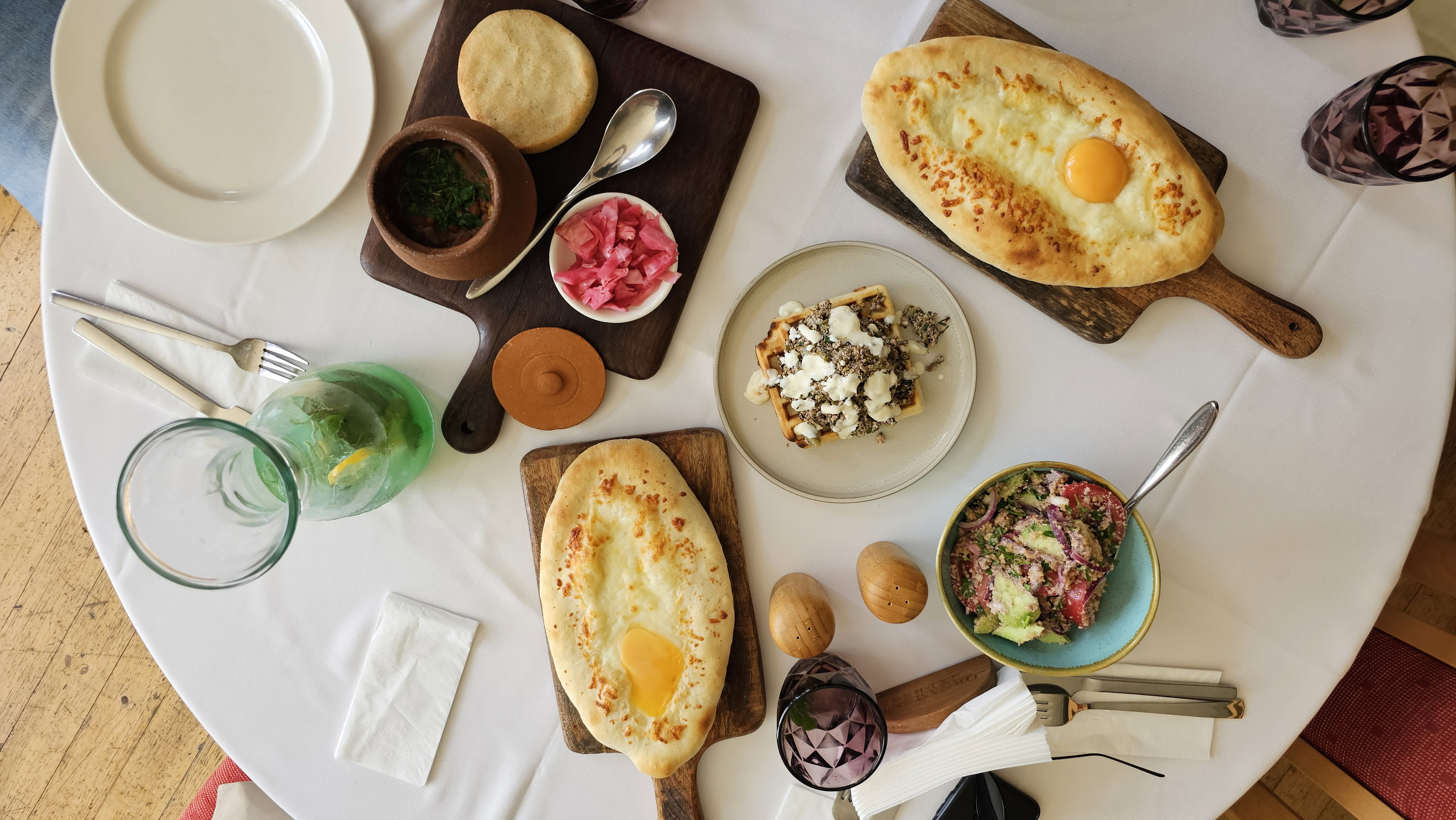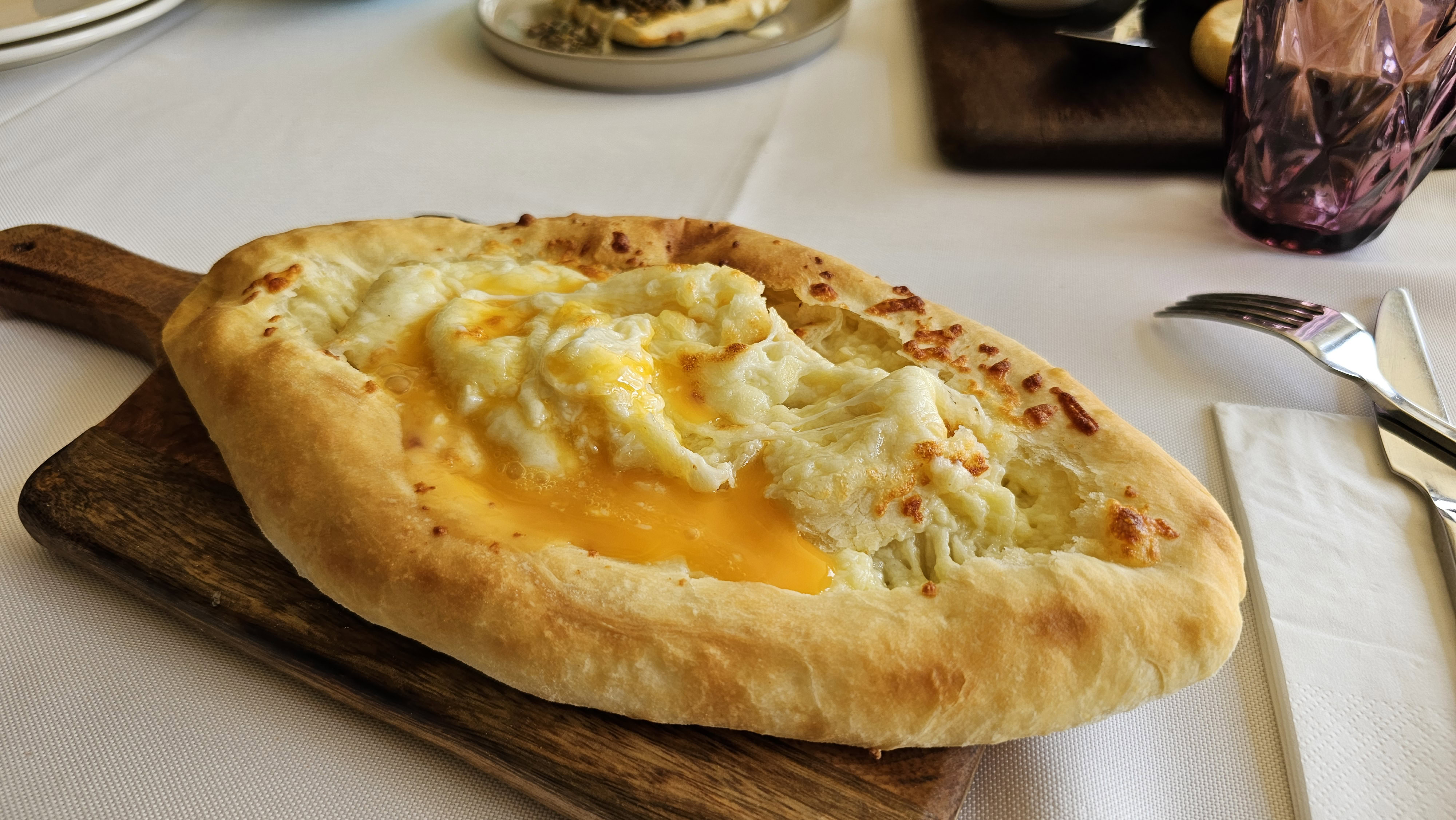 Acharuli khachapuri is the most famous kind of khachapuri, Georgia’s national dish. This baked bread, cheese and egg combo is as delicious as it is indulging and is one of the few dishes in Georgian cuisine that has to be enjoyed individually and using a specific technique and not shared.