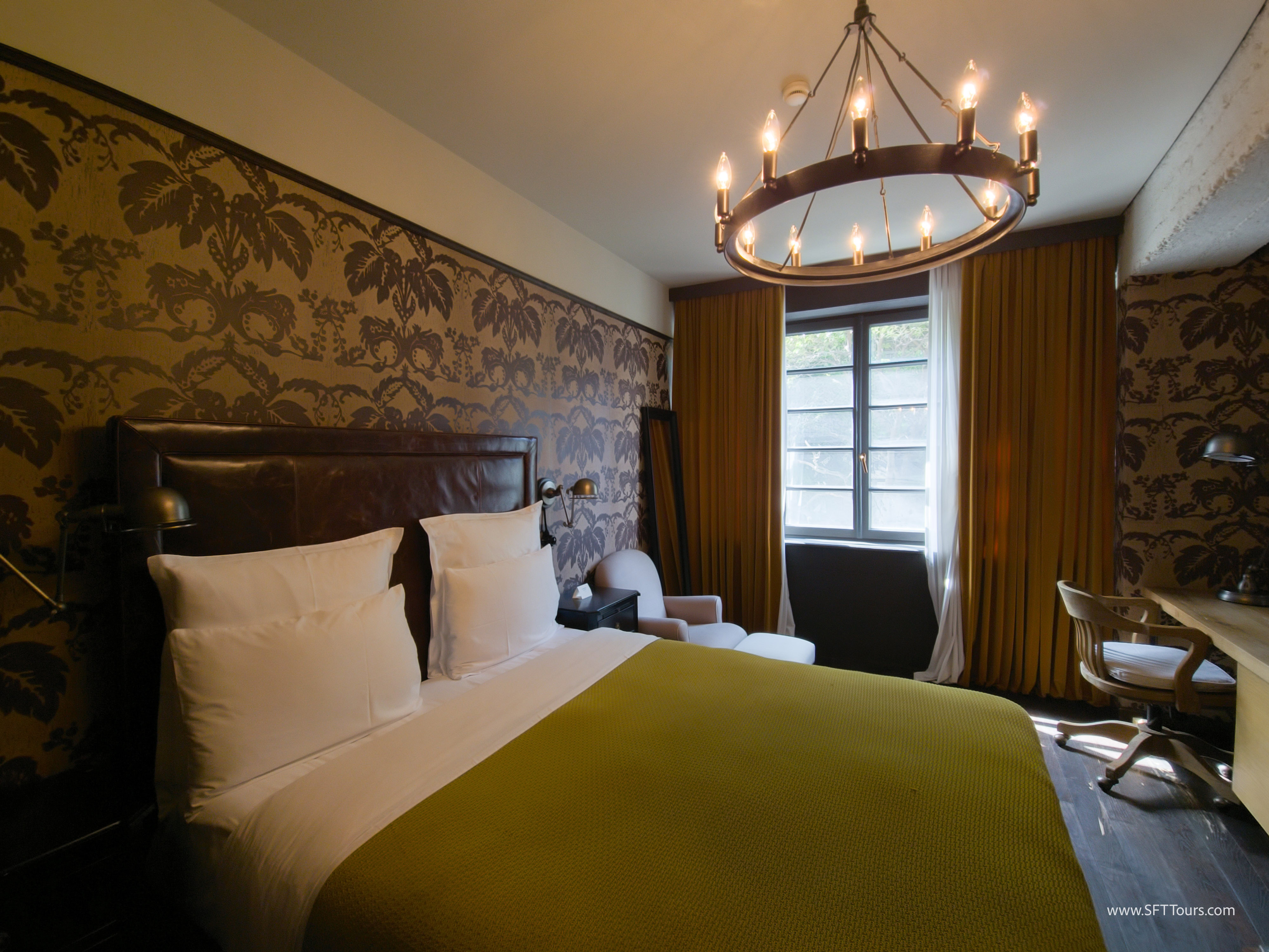 The hotel’s bright green lobby and restaurant are a treat, and one of the nicest ways to start the day. Rooms are modern and recently renovated.