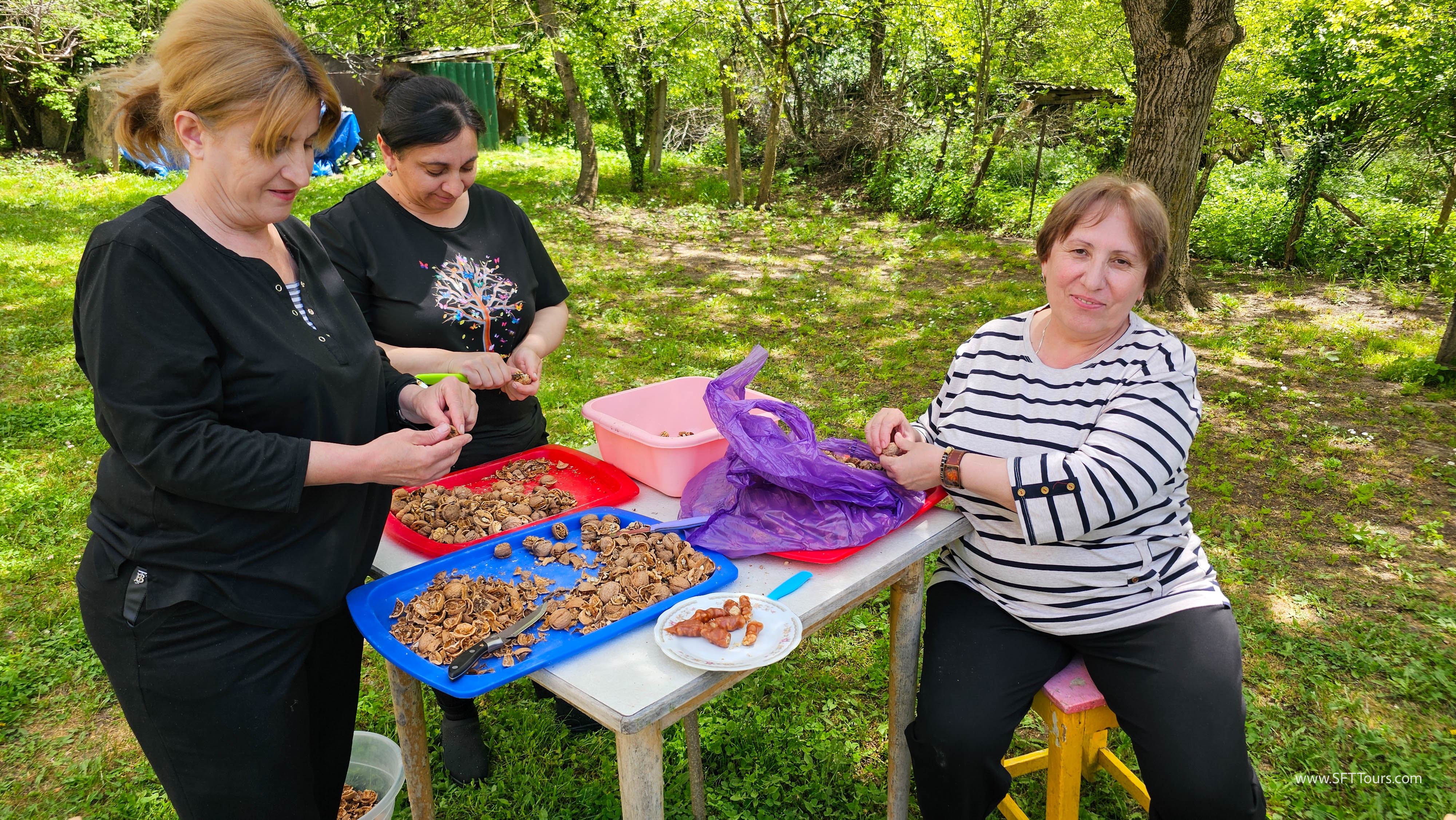 They will also teach us how to bake traditional Georgian bread in the tandoori oven, and make churchella, Georgia’s healthy energy bar made from walnuts and grape juice. This is a great snack you can easily replicate at home.