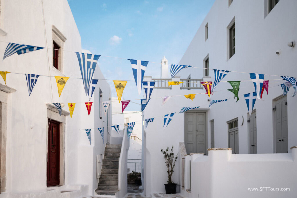 The Cycladic islands are known for the wind which consistently blows in the main islands of Santorini and Mykonos. The sky is almost always blue and there is not a lot of shade besides when we will be in the small narrow alleys of some of the villages. A hat, sunscreen, and sun glasses are a must.