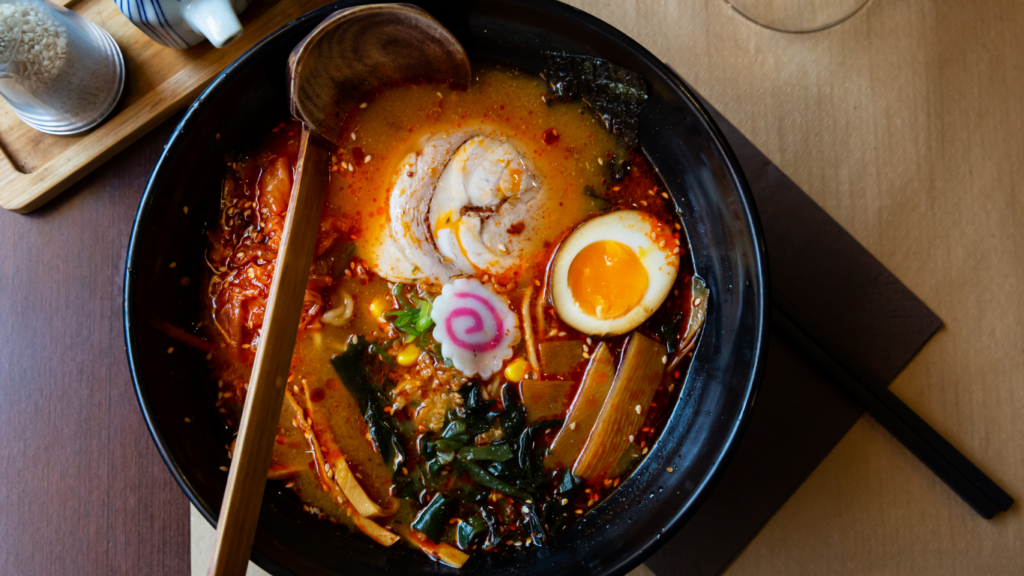 The broth is where most of the variation happens. Shoyu (soy sauce) ramen tends to be lighter and aromatic, miso ramen is richer and slightly sweet, shio (salt-based) ramen is clean and delicate, and tonkotsu ramen uses pork bones simmered for hours to create a creamy, full-bodied soup. Noodles vary too – thin and straight, thick and curly – chosen to match the broth.