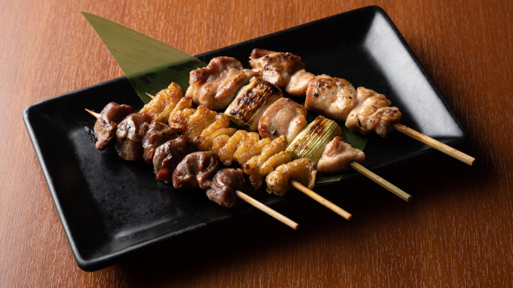 Yakitori: Grilled chicken skewers, seasoned simply or brushed with sauce. Often eaten casually with a drink after work.