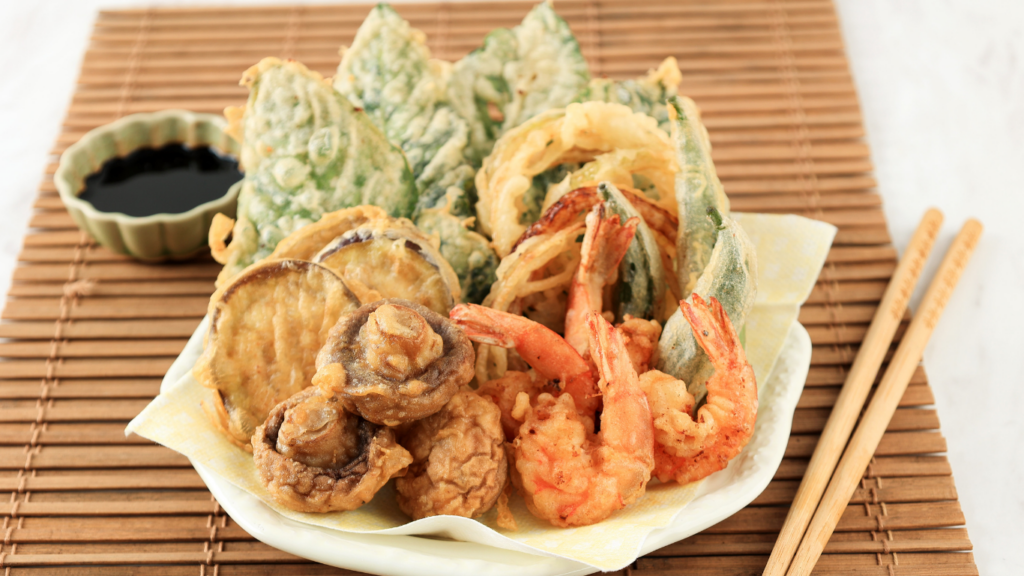 Tempura: Seafood or vegetables lightly battered and fried until crisp, without heaviness. Good tempura feels clean and delicate, not greasy.