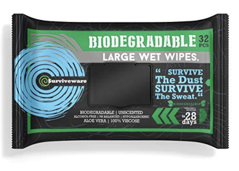 Biodegradable tissue and wet wipes: It’s a good idea to have a small packet of biodegradable wet towels handy when using the public restrooms or after a hike. These ones are specifically designed for outdoorsy people.