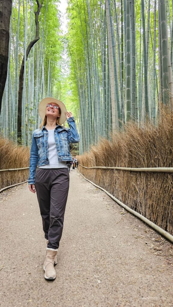 It is very common to see both tourists and locals dressed with beautiful kimonos rented for the day or for a few hours, like we will do during our tour. Locals do it too, and I spotted many Japanese tourists wearing kimonos at the various temples and shrines, including the perfectly color coordinated couple above who let me take their picture.