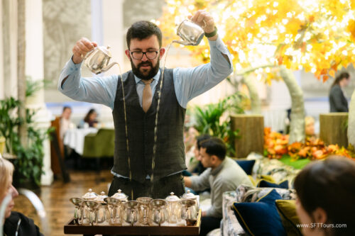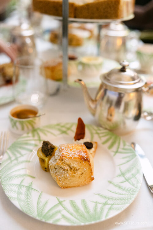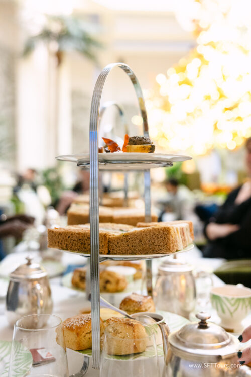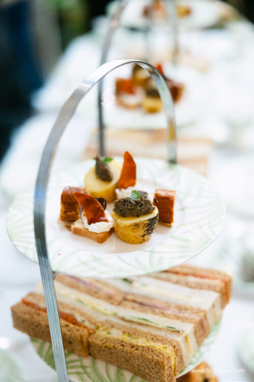 We will enjoy a refined spread of finger sandwiches, warm scones and clotted cream, all served on beautiful stands with loose-leaf tea poured tableside. This is probably one of the fanciest afternoon tea experiences one can enjoy.