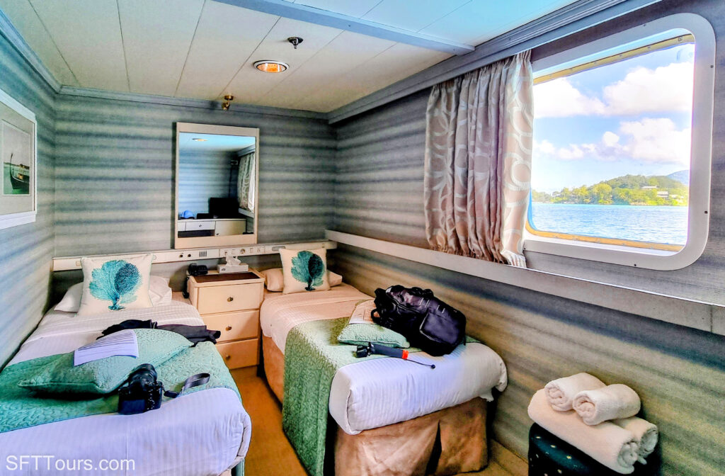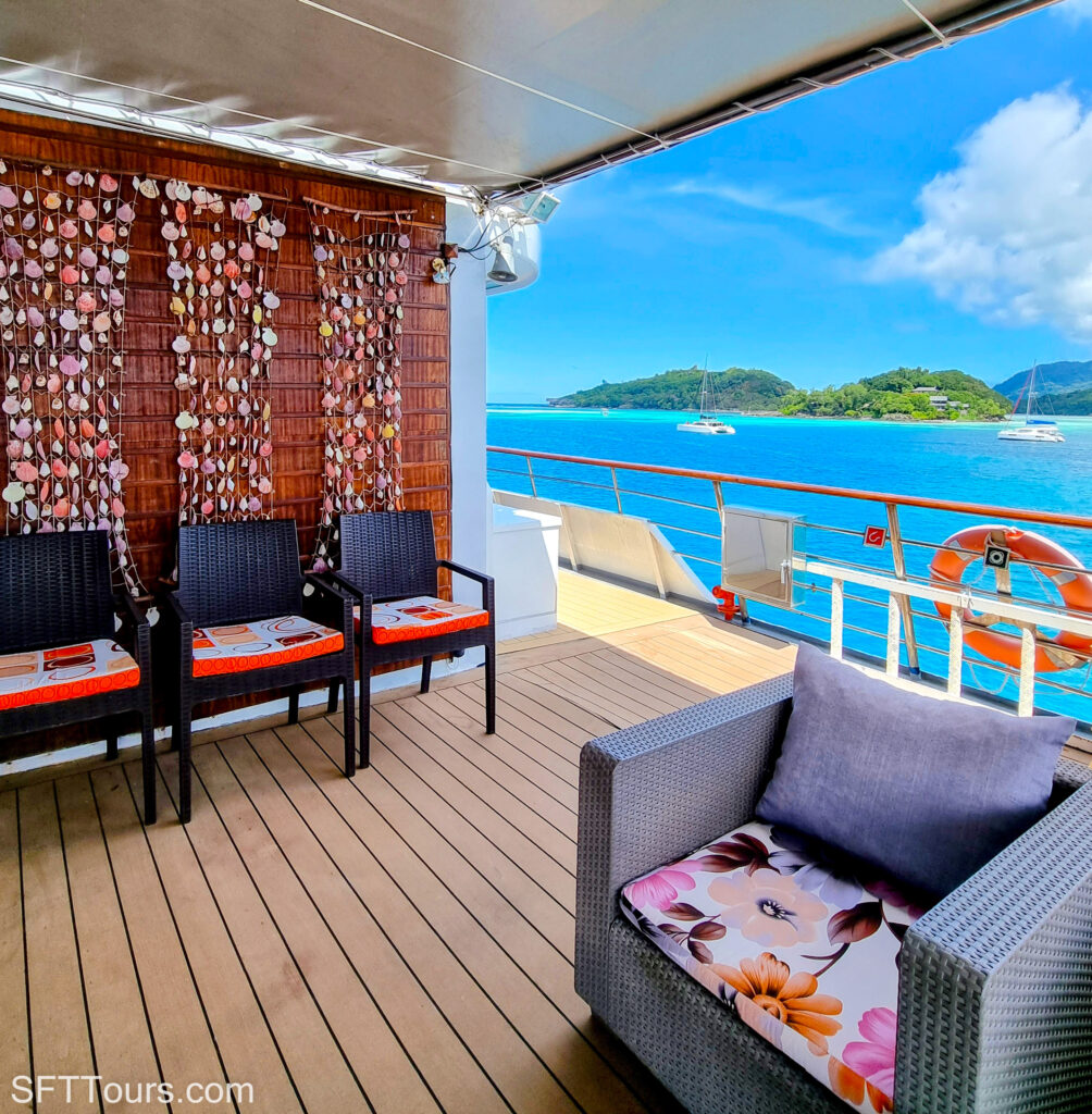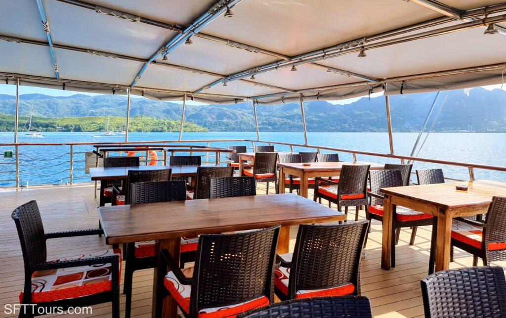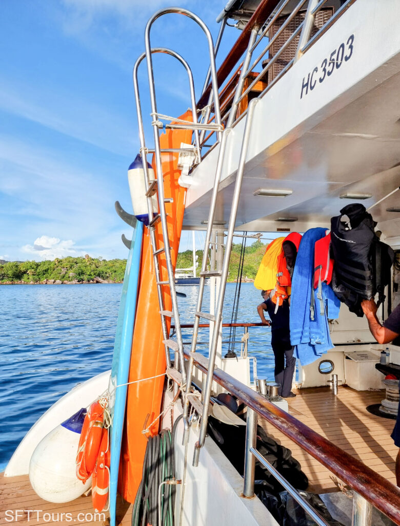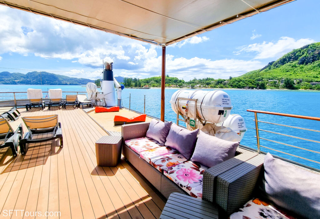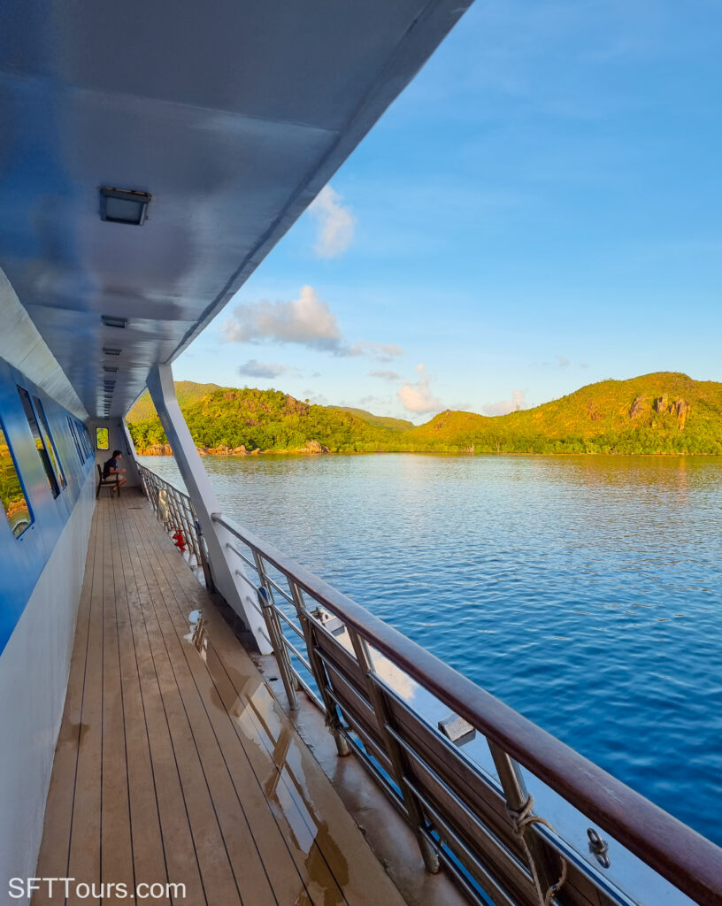If you are prone to sea sickness, we recommend booking one of the cabins on the lower level and towards the back of the ship and talking to your doctor before the trip to take the necessary precautions and seasickness medication. While the boat is quite stable on most days, the sailing time from Mahe to Curieuse and from La Digue to Mahe can be choppy and sea sickness could occur.