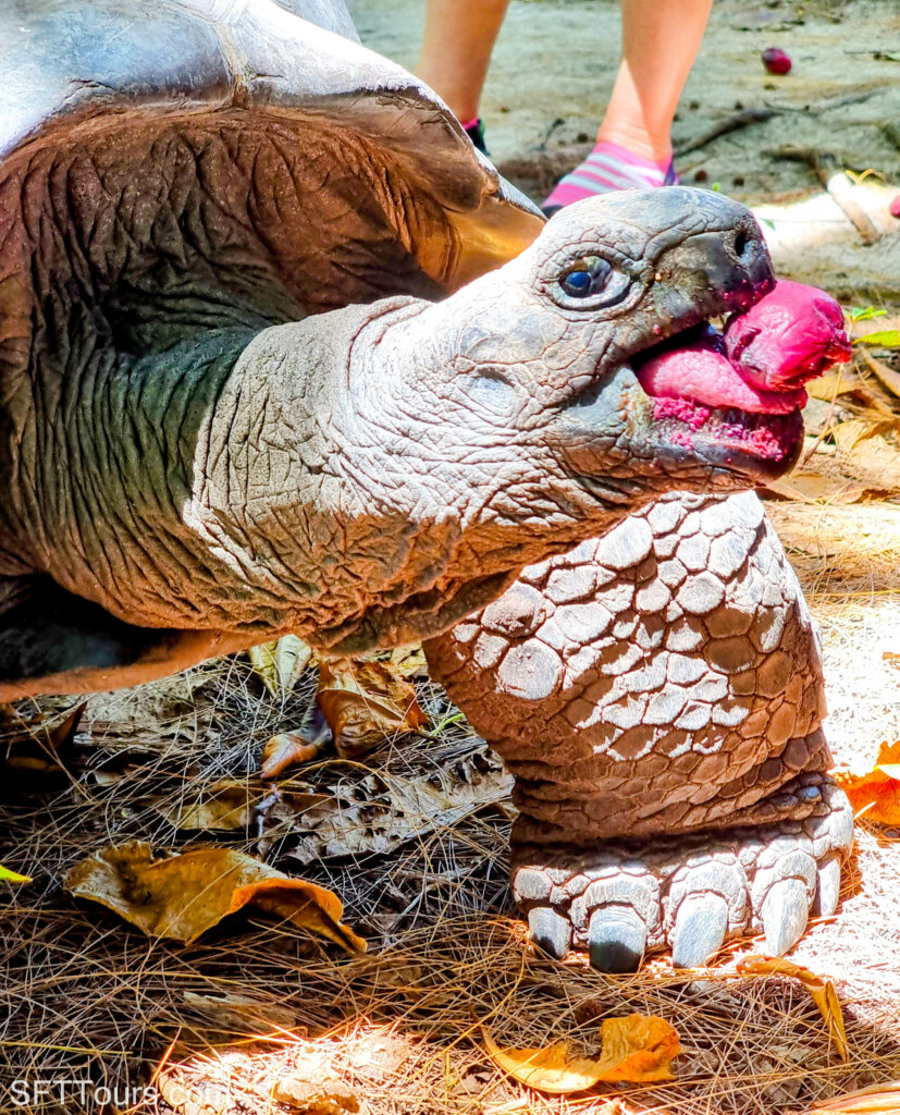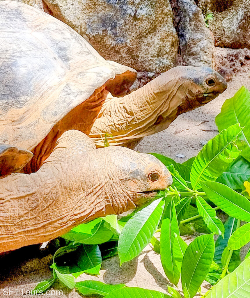 Aldabra tortoises are only found in the Seychelles and are large animals that weigh on average 250 kg. and can live over 100 years, some have even lived more than 200 years.