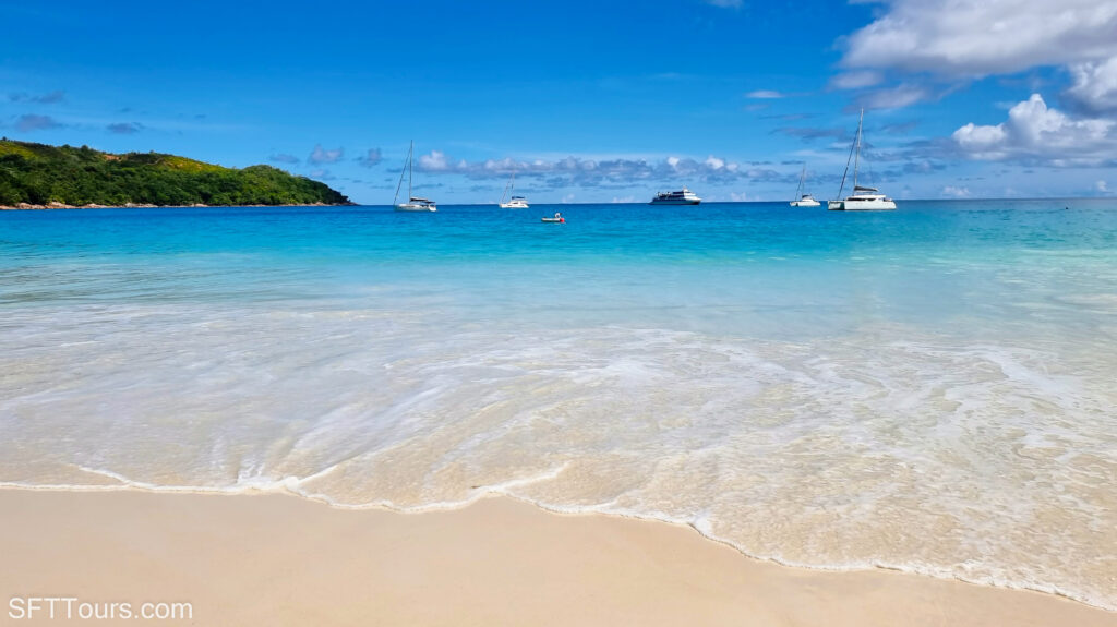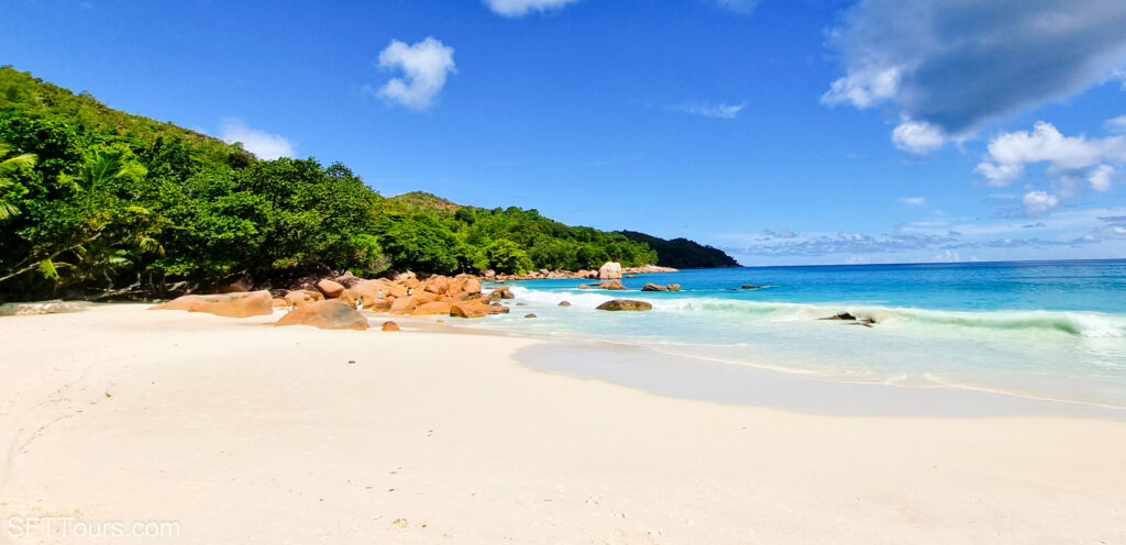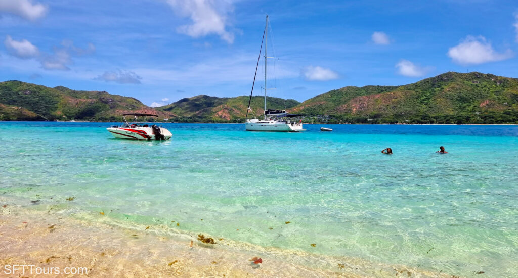Lunch will be onboard as the boat heads over to the back side of Praslin island, to the famous and paradisiac beach of Anse Lazio.