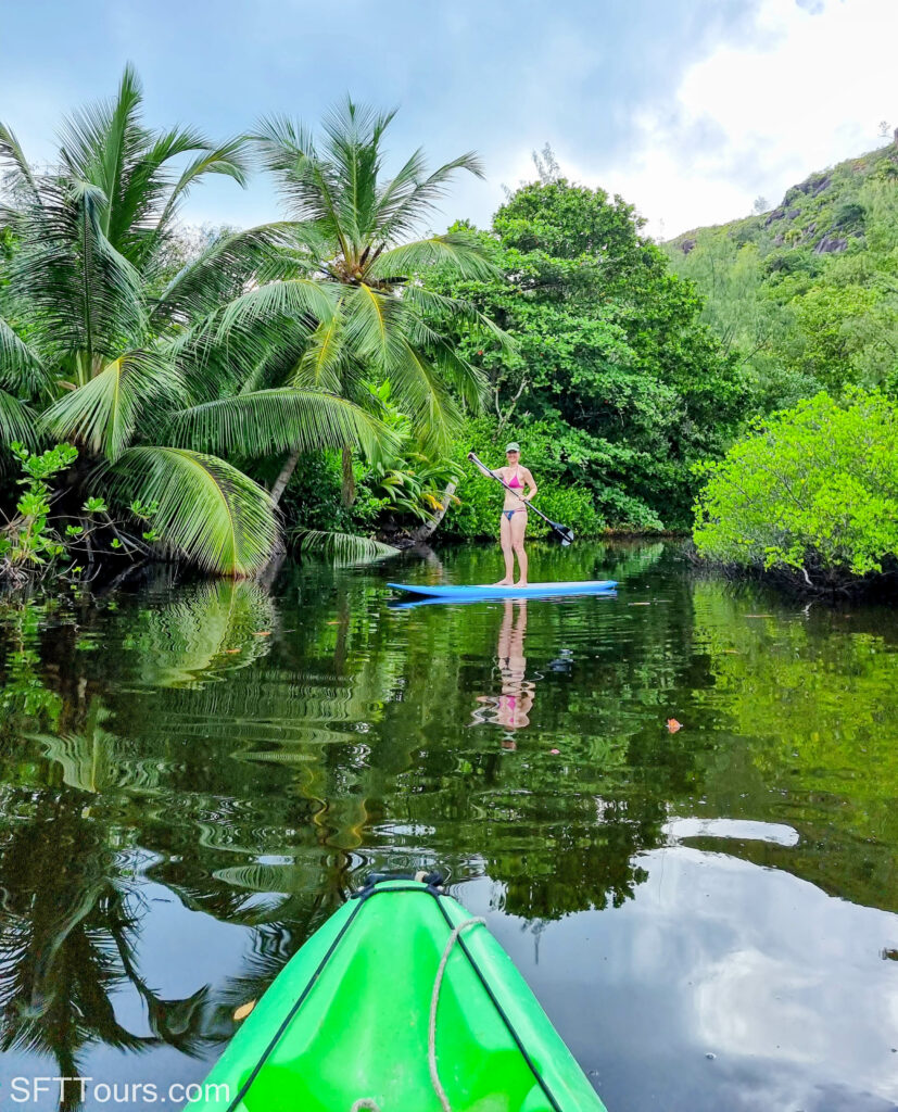 A small lagoon near the beach can also be a good spot for a short ride on the stand paddle boards, or simply laze by the beach, take photos on the characteristic boulders that have made Seychelles famous and take it all in.
