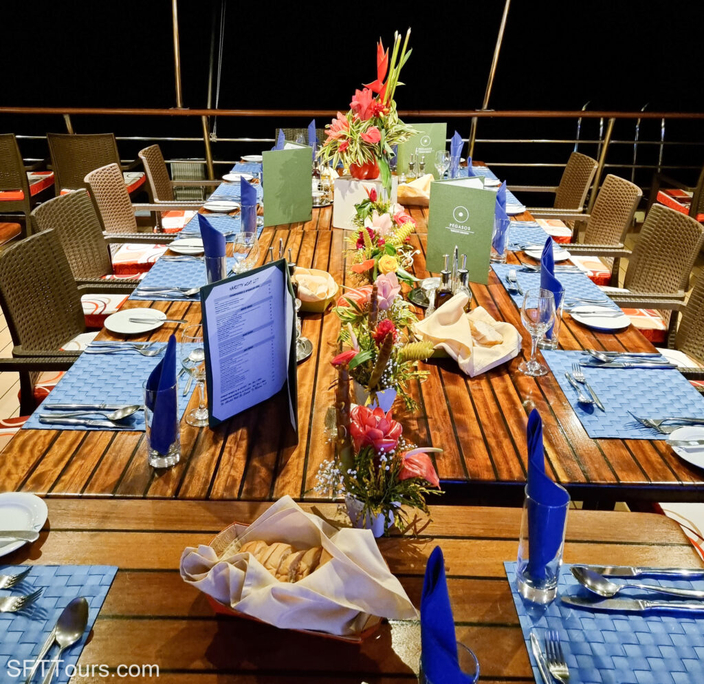 ✔️ Welcome Captain’s dinner on first night and special Farewell dinner on last day