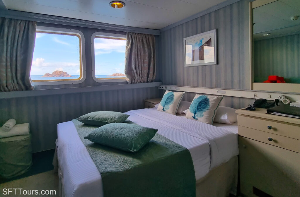 Cabins are located in the lower, middle and top decks and are all unique sizes and layout because of their location and setup however, they can be classified into 3 categories.