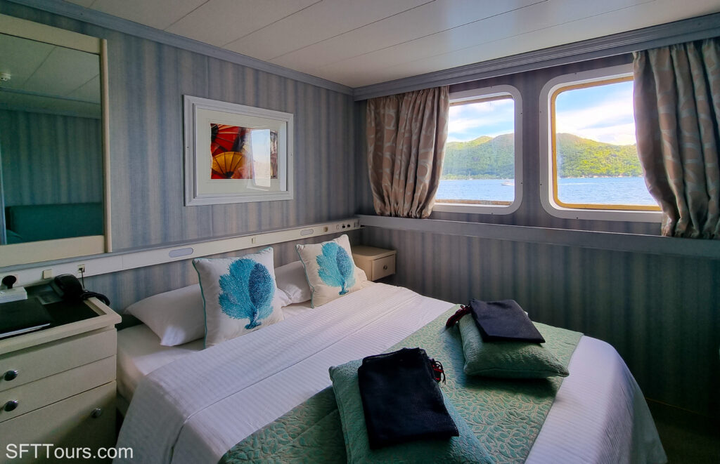 Double use cabin with two single beds and two windows out. All these cabins are located on the main deck.