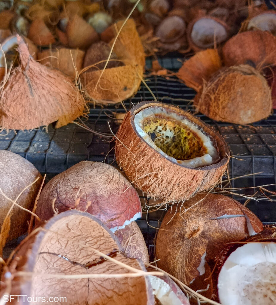 Easier to buy and carry are the shells which are sold as decoration and the fruit quickly hardens to the consistency of ivory and is often used in Traditional Chinese Medicine.