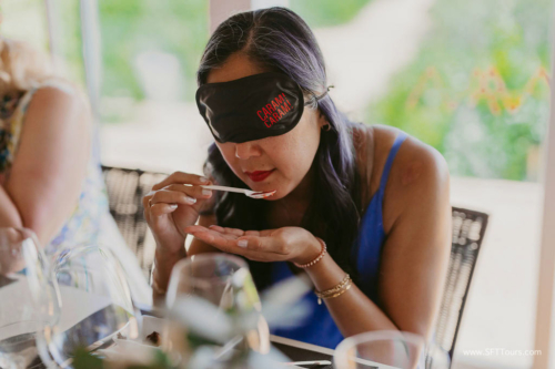 We will try a few local dishes and wines while blind folded and then try them again with our eyes wide open to see the difference.
