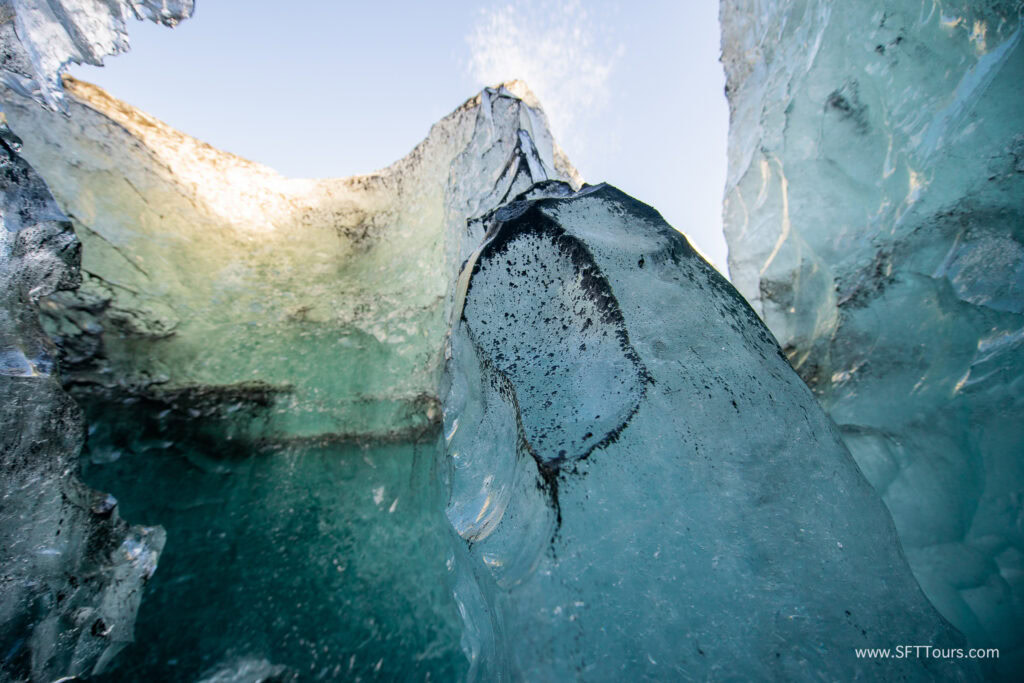 The caves in Iceland are extra unique because of the ash deposits found trapped inside the ice.