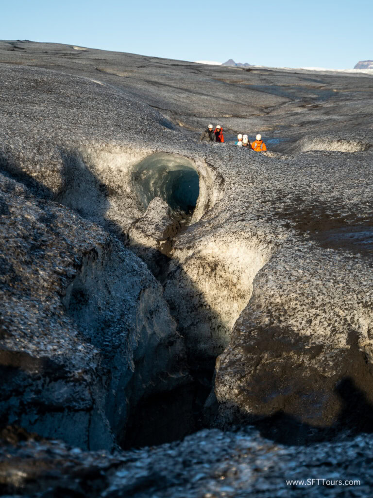 From the spot where we will park our Super Jeep until the entrance of the caves we will be hiking through volcanic paths and on glaciers, with crampons and maybe with axes, depending on the year and what ice caves are open to the public.